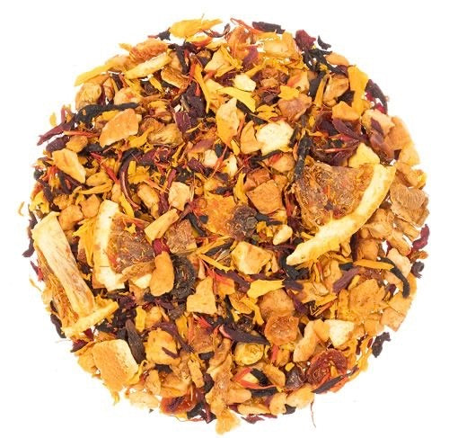 Ingredients: Apple, Hibiscus, Orange, Rosehip, Marigold + Safflower petals, Natural flavors (organic compliant).
