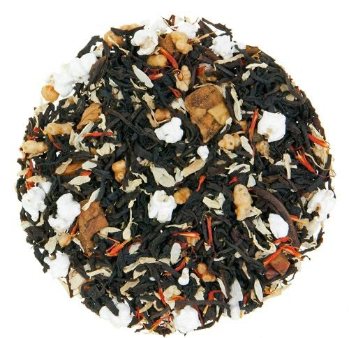Ingredients: Black tea, Popped rice, Apple pieces, White chamomile + Safflower petals, Natural flavors (organic compliant).
