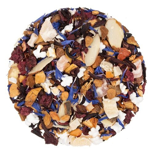Ingredients: Apple, Beet, Hibiscus, Cinnamon, Pineapple + Papaya pieces, Coconut, Almonds, Popped rice, Cornflower petals, Natural flavors (organic compliant). **Allergen Alert - Contains Almonds + Coconut**